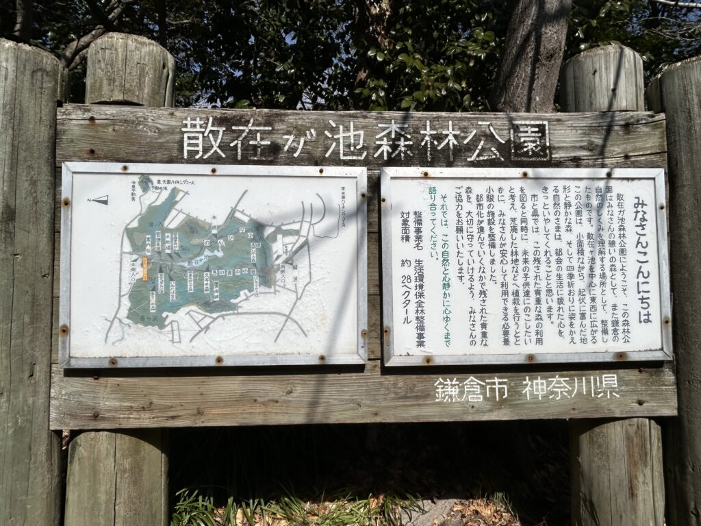 江戸・明治の頃に農業をしているお百姓さん達は、雨が少ない時には水の争いが多くあったそうです。元々、湧き水の多かった場所に土俵でセキを作り貯めたのが鎌倉湖(散在が池)です。