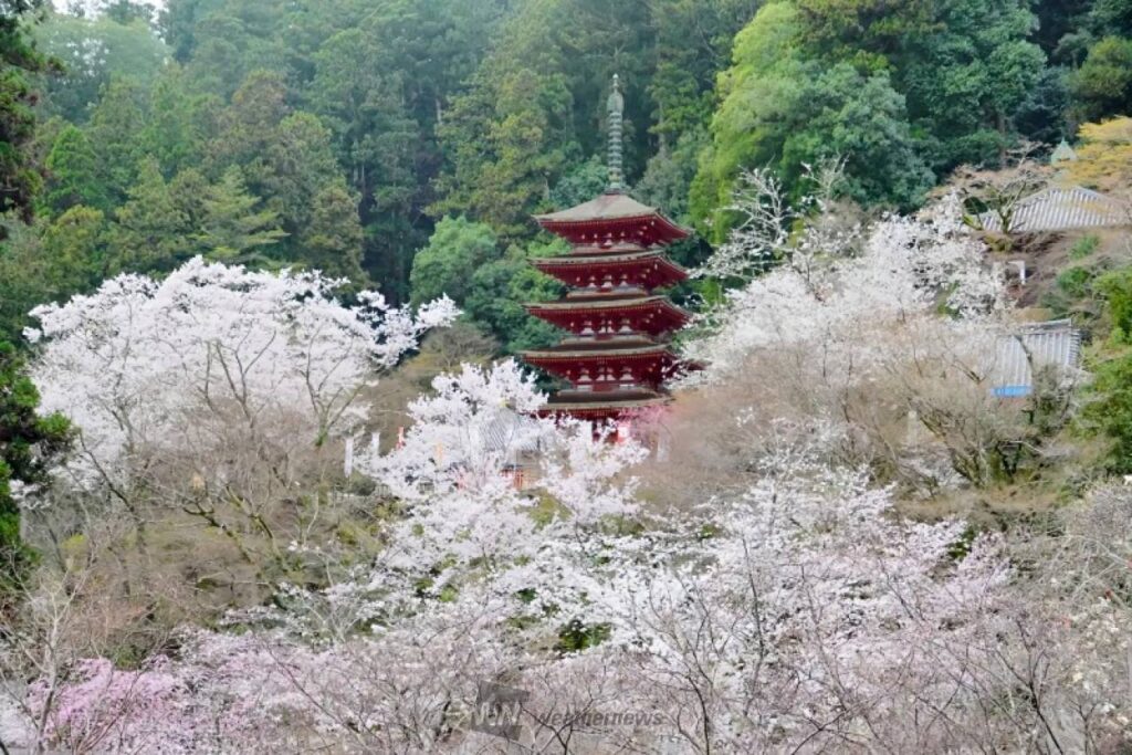 花のお寺として有名です。 しだれ桜とソメイヨシノ 妙智池に映る事も魅力の一つです。
