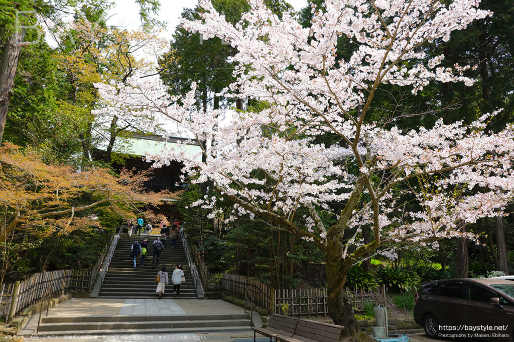 鎌倉駅から徒歩7~8分と近く、アクセスの良さから開花時期は大変混みあいます。 どちらも桜が境内に映え静かな時を過ごせられます。