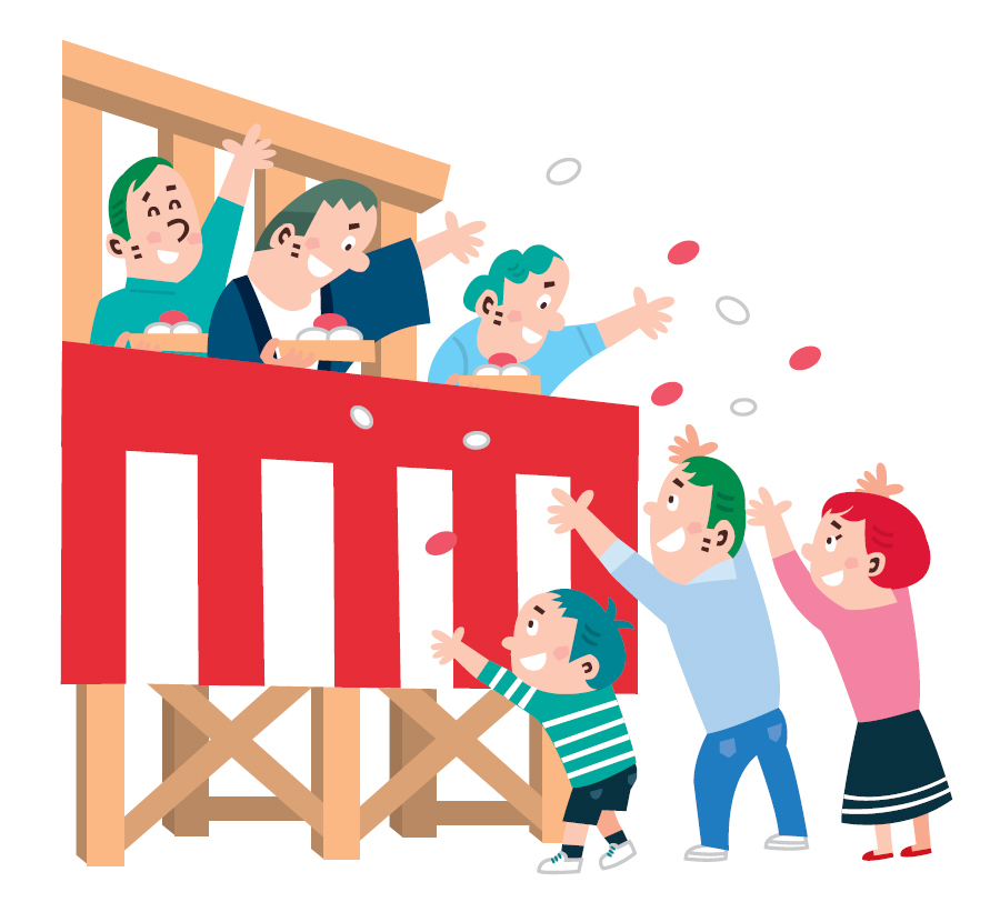いわゆる上棟式の事を「たてまえ」と云っていました。 直径5~6センチ程の丸いモチ、四方モチも2階から投げていました。 5円~10円玉を紙に包み,おひねりも投げていました。